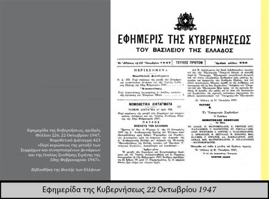 Η υπογραφή της Συνθήκης των Παρισίων (1947)