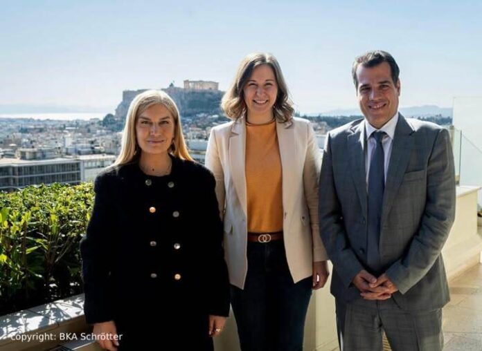 Συνάντηση του Υπουργού Μετανάστευσης και Ασύλου, Θάνου Πλεύρη και της Υφυπουργού Σέβης Βολουδάκη, με την Αυστριακή Ομοσπονδιακή Υπουργό Claudia Bauer