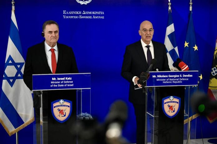 Ο Υπουργός Εθνικής Άμυνας, Νίκος Δένδιας, συναντήθηκε σήμερα, Τρίτη 20 Ιανουαρίου 2026, με τον Υπουργό Άμυνας του Ισραήλ Ισραήλ, Israel Katz, ο οποίος πραγματοποιεί επίσημη επίσκεψη στην Ελλάδα.