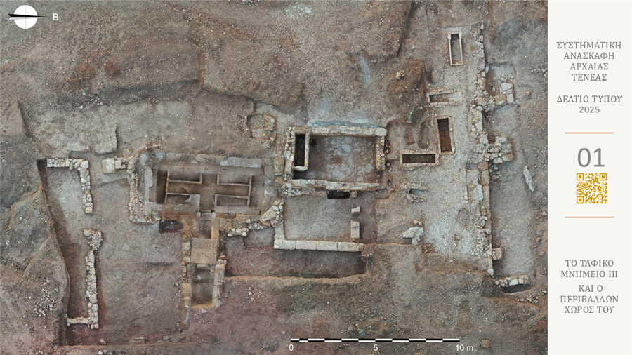 Τον Οκτώβριο του 2025 ολοκληρώθηκαν οι εργασίες της συστηματικής ανασκαφής της αρχαίας Τενέας. Πέριξ του Ταφικού Μνημείου ΙΙΙ (Εικ.1) αποκαλύφθηκε εκτεταμένο συγκρότημα με χρήση από τους αρχαϊκούς έως τους ρωμαϊκούς χρόνους.