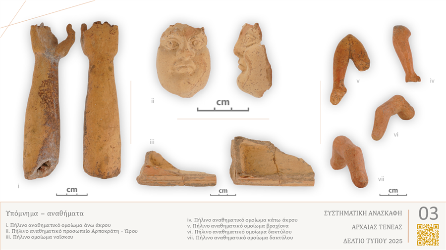 Από τα ανωτέρω ευρήματα σε συνδυασμό με αυτά που εντοπίστηκαν το 2024 όπως πήλινα αναθήματα ανθρωπίνων μελών, μετάλλινα εργαλεία παρασκευής φαρμάκων και ποσότητα δηλητηρίου αρσενικού, γίνεται πλέον σαφές ότι ο χώρος συνδέεται με μυστηριακές τελετές ίασης. Η δεξαμενή ήταν το βασικό στοιχείο της ίασης που επιτυγχάνονταν με τη διαδικασία της κάθαρσης και της εγκοίμησης κοντά στο νερό. Το αναθηματικό ομοίωμα του Αρποκράτη μαζί με ευρήματα παλαιότερων ανασκαφικών περιόδων, όπως το χρυσό δαχτυλίδι με σφραγιδόλιθο, που απεικονίζει τον Απόλλωνα Ιατρό, το πήλινο ανάγλυφο πλακίδιο πετεινού, τα ακροκέραμα, το σιδερένιο δαχτυλίδι και ο λύχνος με αναπαραστάσεις του Σάραπη, αλλά και τα χρυσά φύλλα λωτού που συνδέονται με τον Αρποκράτη, και τέλος το πλήθος ζωοαρχαιολογικού υλικού από ζώα που χρησιμοποιήθηκαν σε μυστηριακές τελετές, ενισχύουν κατά πολύ την παραπάνω άποψη. Η παρουσία δε του Σάραπη και του Αρποκράτη αποδεικνύουν πως η Τενέα συμβαδίζει με τον πολιτιστικό και θρησκευτικό συγκρητισμό που προέκυψε από την Αίγυπτο και απέκτησε οικουμενικό χαρακτήρα στα χρόνια των Πτολεμαίων.