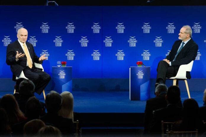 Δελφοί, 23 Απριλίου 2026 – «Σε μια περίοδο έντονων γεωπολιτικών ανακατατάξεων, το ερώτημα για το μέλλον των σχέσεων μεταξύ Ευρωπαϊκής Ένωσης και Ηνωμένων Πολιτειών παραμένει κρίσιμο. Παρά τις δημόσιες εντάσεις και τις διαφωνίες που συχνά κυριαρχούν στην επικαιρότητα, κάτω από την επιφάνεια διαμορφώνεται ένα πυκνό δίκτυο συνεργασιών που δείχνει ότι η διατλαντική σχέση όχι μόνο αντέχει, αλλά και επαναπροσδιορίζεται», ανέφερε ο κ. Andrew Puzder, Πρέσβης, U.S. Mission to the European Union, Ηνωμένες Πολιτείες, σε συζήτηση που είχε με τον κ. Αθανάσιο Έλλις, Editor in Chief, Kathimerini English Edition, στα πλαίσια του11ου Οικονομικού Φόρουμ των Δελφών που διεξάγεται στους Δελφούς 22-25 Απριλίου.