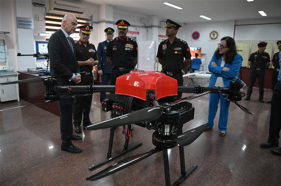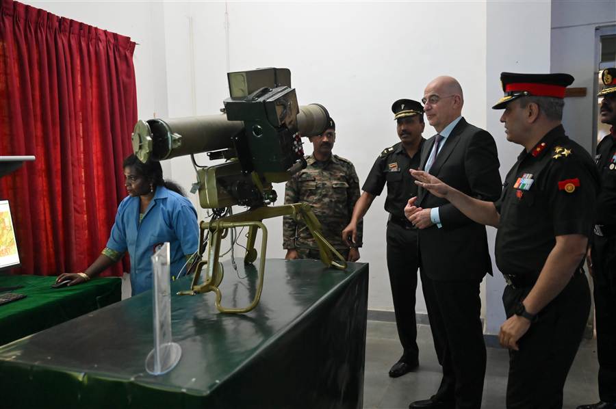 Ο Υπουργός Εθνικής Άμυνας επισκέφτηκε επίσης σήμερα, το Κέντρο Αμυντικής Παραγωγής του Υπουργείου Άμυνας της Ινδίας, στο Νέο Δελχί, όπου παρακολούθησε παρουσιάσεις σχετικά με τις προοπτικές συνεργασίας στην αμυντική καινοτομία και στην τεχνολογία. Παρόντες ήταν οι επικεφαλής, οι Διευθύνοντες Σύμβουλοι, οι Γενικοί Διευθυντές και οι επικεφαλής Ανάπτυξης από τις Δημόσιες Επιχειρήσεις του Αμυντικού Τομέα της Ινδίας, αλλά και μέλη ιδιωτικών επιχειρήσεων καινοτομίας.