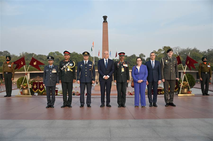 Στη συνέχεια, ο κ. Δένδιας επισκέφθηκε την Εθνική Πινακοθήκη Μοντέρνας Τέχνης και την έκθεση «Γκίκας: Ταξίδι στην Ινδία», για τον μεγάλο Έλληνα ζωγράφο Νίκο Χατζηκυριάκο – Γκίκα και μετέβη στο Εθνικό Μνημείο Πεσόντων της Ινδίας, όπου κατέθεσε στέφανο.
