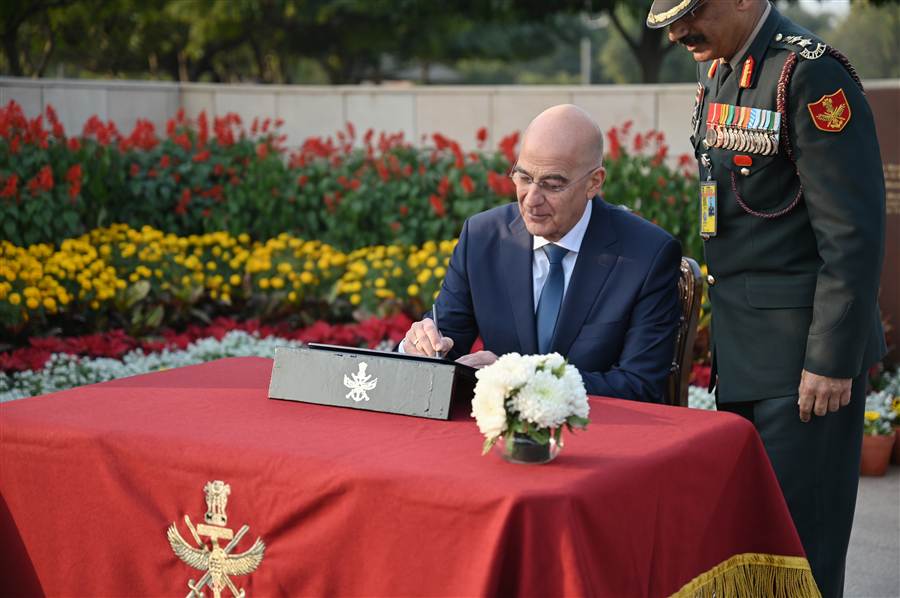 «Μόλις ολοκληρώθηκε η επίσκεψη μου στην Ινδία. Είχα την ευκαιρία, καταρχάς, να συναντήσω τον Υπουργό Εξωτερικών, τον Σουμπραχμανιάμ Τζαϊσάνκαρ (Subrahmanyam Jaishankar) και να επισκεφθώ μετά μια σειρά από Βάσεις, αλλά και εταιρείες και το οικοσύστημα καινοτομίας της μεγάλης αυτής χώρας. Να έρθω σε επαφή με τον τρόπο που σκέφτονται, με το τρόπο που αναπτύσσουν και μεταρρυθμίζουν τις Ένοπλες Δυνάμεις τους. Και τελικά σήμερα, πέρα από την κατάθεση στεφάνου στον Άγνωστο Στρατιώτη, να συναντήσω τον Υπουργό Άμυνας Ινδίας κ. Singh, με τον οποίο είχαμε μια βαθιά και ειλικρινή ανταλλαγή απόψεων.