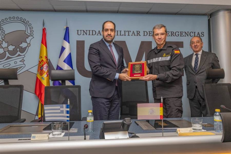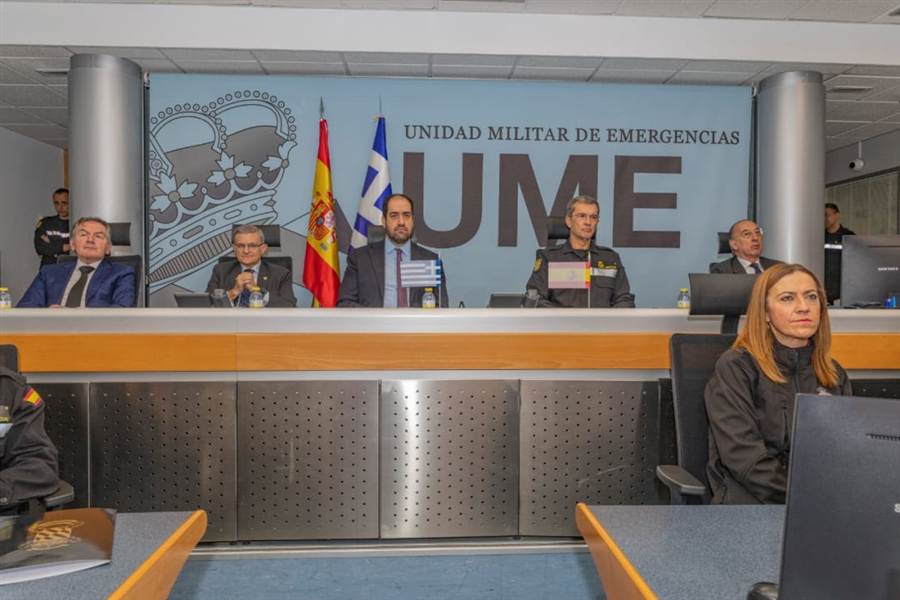 Τέλος, ο κ. Κεφαλογιάννης επισκέφθηκε τις εγκαταστάσεις της UME (Unidad Militar de Emergencias) στην αεροπορική βάση Torrejón, όπου συναντήθηκε με τον Επικεφαλής της UME, Αντιστράτηγο Francisco Javier Marcos Izquierdo και ενημερώθηκε για την οργάνωση, τη λειτουργία και τη διαδικασία ενεργοποίησης της Μονάδας.