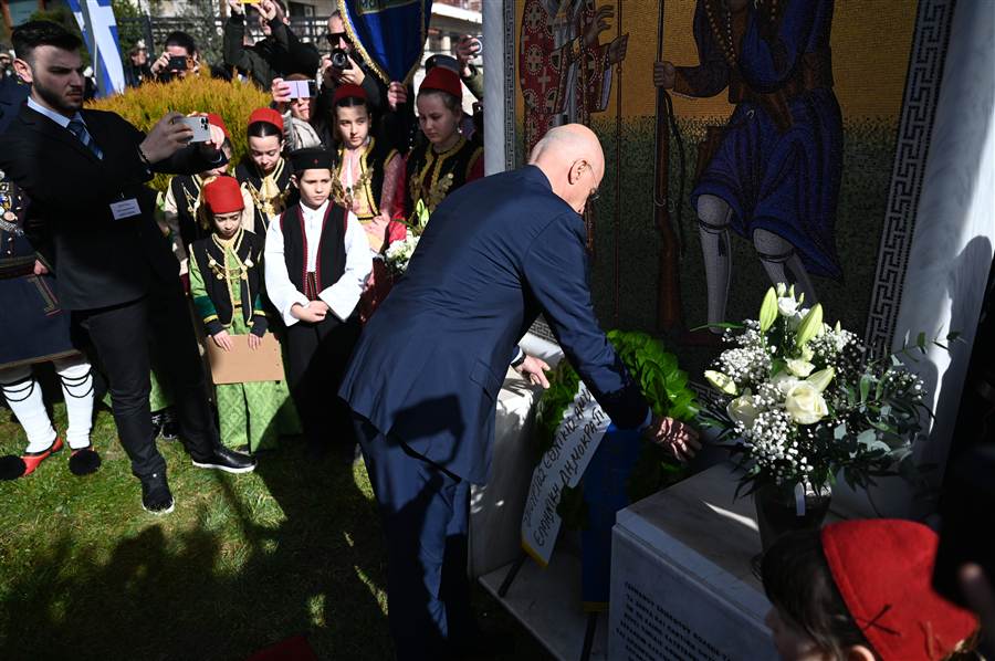 Στη συνέχεια, ο κ. Δένδιας μετέβη στο μνημείο των ηρώων Γερμανού Καραβαγγέλη και Παύλου Μελά στην αυλή του Ιερού Επισκοπείου, όπου τελέστηκε επιμνημόσυνη δέηση και κατάθεσε στεφάνι.