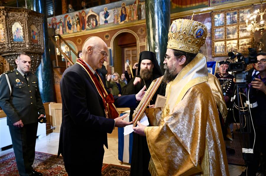 Ο κ. Δένδιας τιμήθηκε από την Ιερά Μητρόπολη Καστοριάς και τον Σεβασμιώτατο Μητροπολίτη Καστορίας κ.κ. Καλλίνικο με τον Σταυρό του Αγίου Μηνά, μαζί με την ιερή εικόνα του Αγίου Καλλινίκου και πίνακα του ιστορικού Ναού Καστοριάς.