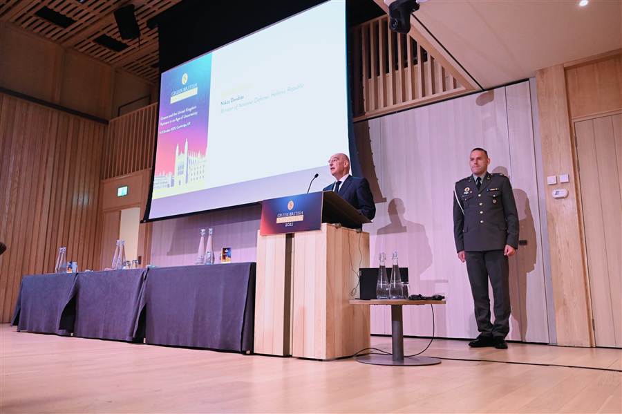 Ο Υπουργός Εθνικής Άμυνας, Νίκος Δένδιας, πραγματοποίησε την κεντρική ομιλία κατά την εναρκτήρια συνεδρίαση σήμερα, Παρασκευή 10 Οκτωβρίου 2025, του 9ου Ελληνο – Βρετανικού Συμποσίου, στο Πανεπιστήμιο του Cambridge (Jesus College), στο Ηνωμένο Βασίλειο, με θέμα: “Greece and the United Kingdom – partners in an age of uncertainty”.