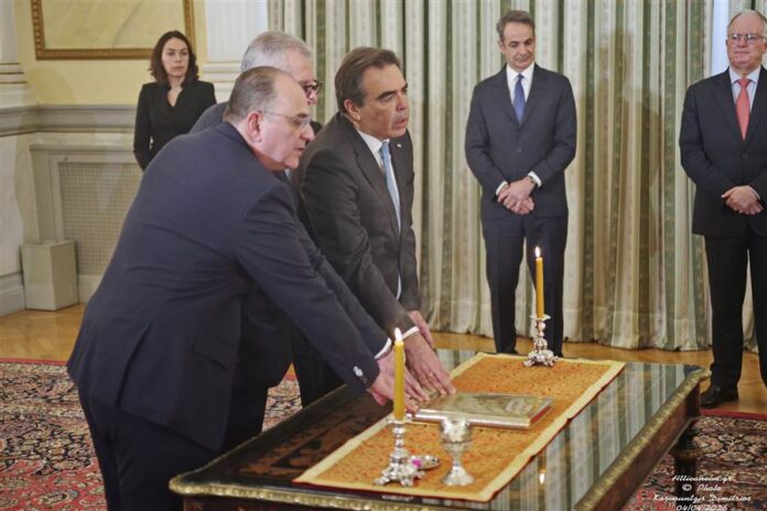 Ενώπιον του Προέδρου της Δημοκρατίας Κωνσταντίνου Αν. Τασούλα, και παρουσία του Πρωθυπουργού Κυριάκου Μητσοτάκη, ορκίσθηκαν από τον Αρχιγραμματέα της Ιεράς Συνόδου, Επίσκοπο Σκιάθου Ιωάννη οι: