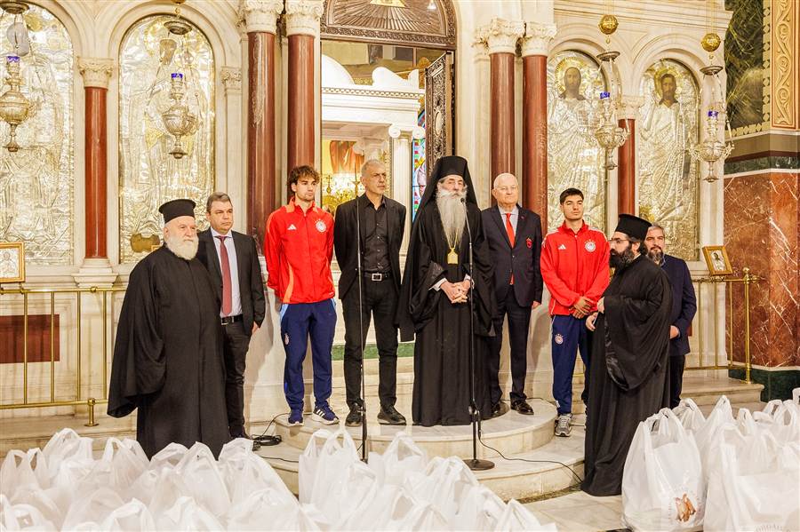 Εκ μέρους του Προέδρου της ΠΑΕ Ολυμπιακός Βαγγέλη Μαρινάκη, παραδόθηκαν επίσης χρηματικές επιταγές για την ενίσχυση του έργου της Μητρόπολης.