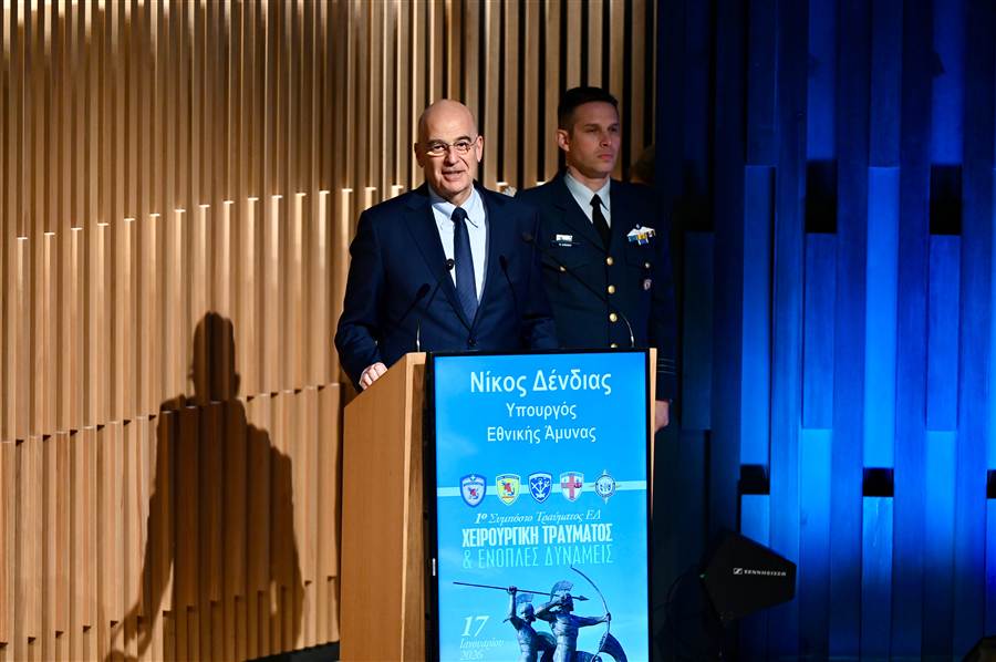 Ο Υπουργός Εθνικής Άμυνας, Νίκος Δένδιας, παρέστη σήμερα, Σάββατο 17 Ιανουαρίου 2026, στο 1ο Συμπόσιο Τραύματος των Ενόπλων Δυνάμεων, με θέμα «Χειρουργική Τραύματος και Ένοπλες Δυνάμεις», που διεξήχθη στο Ίδρυμα Βασίλη & Ελίζας Γουλανδρή.
