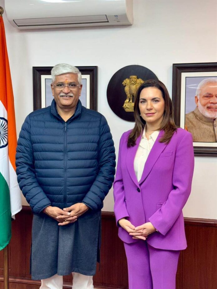 Στο πλαίσιο της 24ωρης επίσκεψής της στο Νέο Δελχί η Υπουργός Τουρισμού κα Όλγα Κεφαλογιάννη είχε διμερή συνάντηση με τον Ινδό ομόλογό της, Υπουργό Τουρισμού και Πολιτισμού κ. Gajendra Singh Shekhawat.