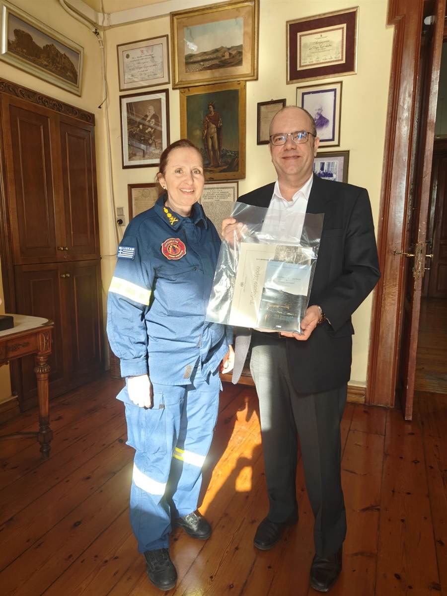 O Δήμαρχος Σύρου – Ερμούπολης κ. Αλέξανδρος Αθανασίου υποδέχθηκε σήμερα, Τρίτη 3 Φεβρουαρίου 2026, στο γραφείο του, τη νέα διοικήτρια της ΔΙ.Π.Υ.Ν. Κυκλάδων, πύραρχο κ. Γεωργία Τσάφου, καθώς και τον διοικητή της Πυροσβεστικής Υπηρεσίας Ερμούπολης, αντιπύραρχο κ. Παναγιώτη Μαυραγάνη, με αφορμή την ανάληψη των καθηκόντων της.