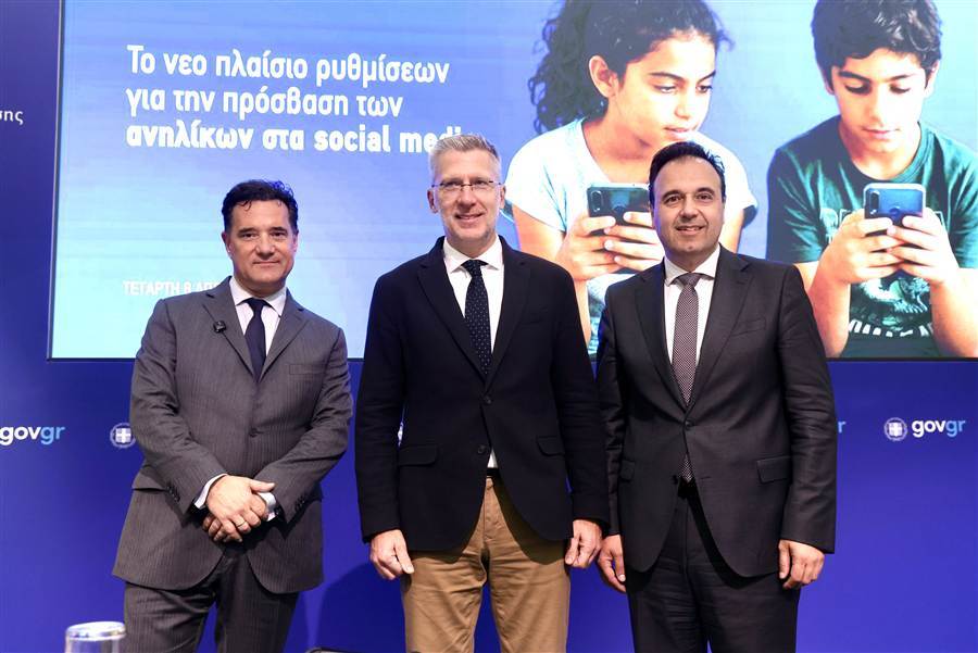 Το νέο πλαίσιο ρυθμίσεων για την πρόσβαση των ανηλίκων στα social media παρουσίασαν σήμερα, Μ. Τετάρτη 8 Απριλίου 2026, ο Υπουργός Υγείας Άδωνις Γεωργιάδης, ο Υπουργός Ψηφιακής Διακυβέρνησης & Τεχνητής Νοημοσύνης Δημήτρης Παπαστεργίου και ο Υπουργός Επικρατείας Άκης Σκέρτσος, κατά τη διάρκεια Συνέντευξης Τύπου στο Υπουργείο Ψηφιακής Διακυβέρνησης.