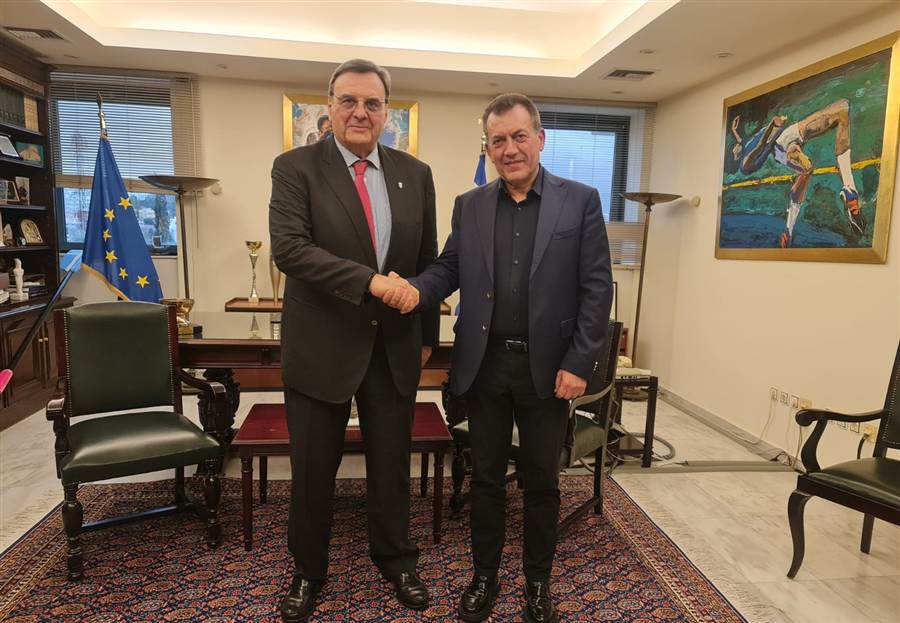 Σε εξαιρετικό κλίμα πραγματοποιήθηκε στο Υπουργείο Αθλητισμού συνάντηση του Υπουργού Αθλητισμού, Γιάννη Βρούτση, με τον Πρόεδρο της Ελληνικής Ολυμπιακής Επιτροπής, Ισίδωρο Κούβελο, τον Γενικό Γραμματέα της ΕΟΕ Στέφανο Χανδακά και τον Γιάννη Κάππο, Πρόεδρο της ΕΦΙΠΗΔ, παρουσία του Γενικού Γραμματέα Αθλητισμού, Γιώργου Μαυρωτά.