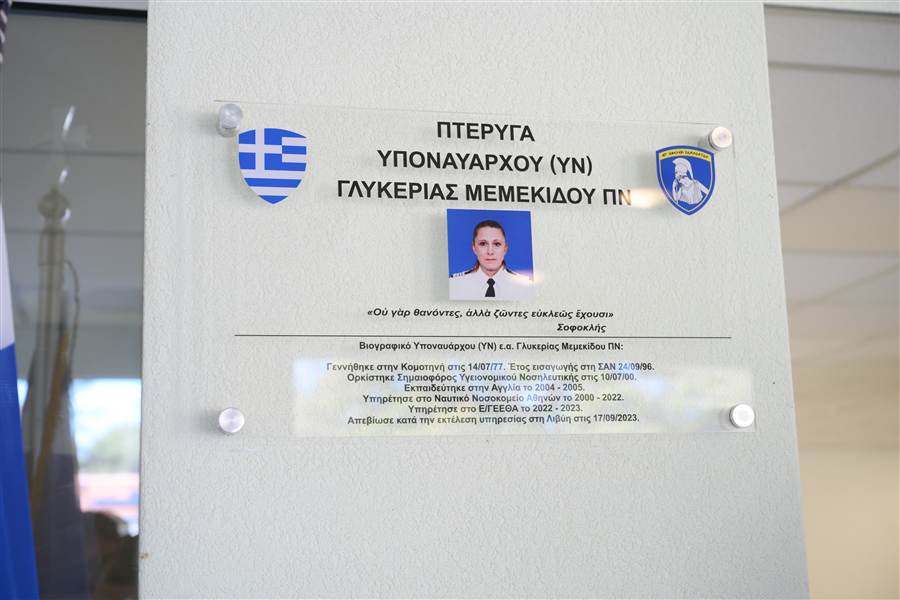 Ο Υπουργός Εθνικής Άμυνας, Νίκος Δένδιας, συνοδευόμενος από τον Αρχηγό ΓΕΕΘΑ Στρατηγό Δημήτριο Χούπη, παρέστη σήμερα, Πέμπτη 19 Φεβρουαρίου 2026, στην τελετή Ονοματοδοσίας των κτιρίων διαβίωσης της Σχολής Αξιωματικών Νοσηλευτικής (ΣΑΝ) σε «Πτέρυγα Υποναυάρχου (ΥΝ) Γλυκερίας Μεμεκίδου ΠΝ» και «Πτέρυγα Υποπτεράρχου (ΥΝ) Ευαγγελίας Ανδρεαδάκη» ως απόδοση φόρου τιμής στην Υποναύαρχο (ΥΝ) Γλυκερία Μεμεκίδου ΠΝ και την Υποπτέραρχο (ΥΝ) Ευαγγελία Ανδρεαδάκη οι οποίες έχασαν τη ζωή τους εν ώρα καθήκοντος, συμμετέχοντας σε αποστολή ανθρωπιστικής βοήθειας στη Λιβύη.