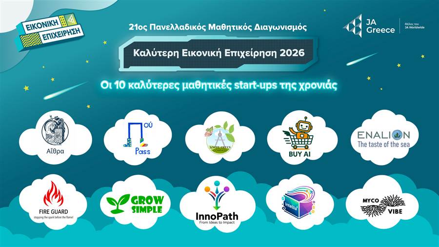 To Junior Achievement Greece ανακοινώνει τις 10 καινοτόμες μαθητικές «startup» που ξεχώρισαν και θα διαγωνισθούν στον 21ο Πανελλαδικό Μαθητικό Διαγωνισμό «Καλύτερη Εικονική Επιχείρηση 2026». Τα πρωτότυπα προϊόντα/υπηρεσίες που δημιούργησαν τα παιδιά «επιχειρηματίες», εντυπωσίασαν την κριτική επιτροπή του οργανισμού, η οποία, αφού εξέτασε αναλυτικά τα περισσότερα από 100 business plans των μαθητικών ομάδων από όλη την Ελλάδα, επέλεξε τις 10 καλύτερες που θα διεκδικήσουν το πρώτο βραβείο στον εθνικό τελικό του παγκόσμιου προγράμματος/διαγωνισμού «Εικονική Επιχείρηση – JA Company Program».