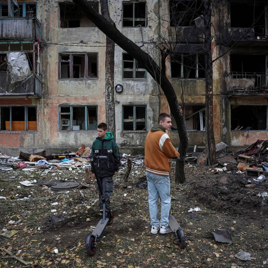 | A damaged building on Sunday after a Russian attack in Shakhtarske, Ukraine. Anatolii Stepanov/Reuters |