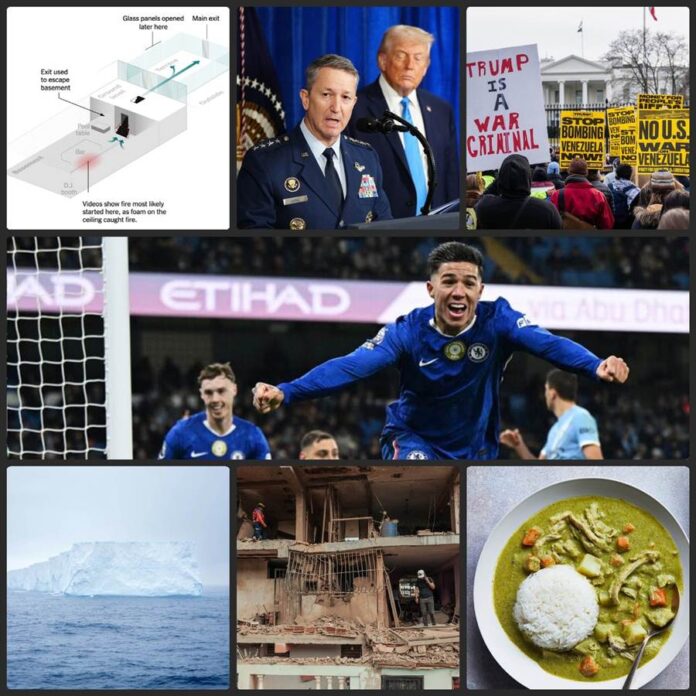 The New York Times: Ο Κόσμος: Βενεζουέλα, δημοκρατία και πετρέλαιο – Περισσότερα θύματα πυρκαγιάς στην Ελβετία εντοπίστηκαν – Ένας πιο υγιής εγκέφαλος το 2026 – Η διπλωματία των κανονιοφόρων του Τραμπ – Ένα αστέρι που αγαπά τη μαρμελάδα στο Λονδίνο