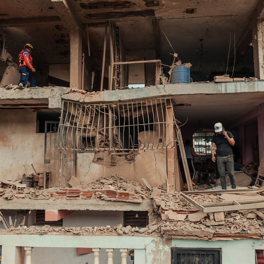 A building damaged during the U.S. operation in Venezuela.  The New York Times