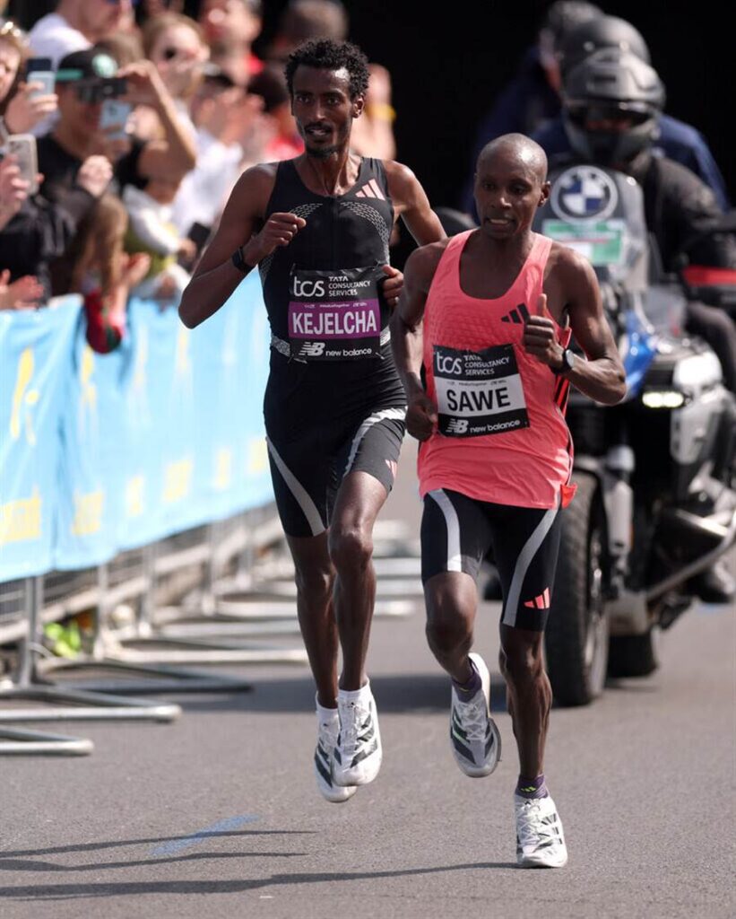 Sabastian Sawe of Kenya broke the two-hour mark to win the London Marathon on Sunday, followed closely by Yomif Kejelcha of Ethiopia. Two 1:59 marathons at once: What’s going on?