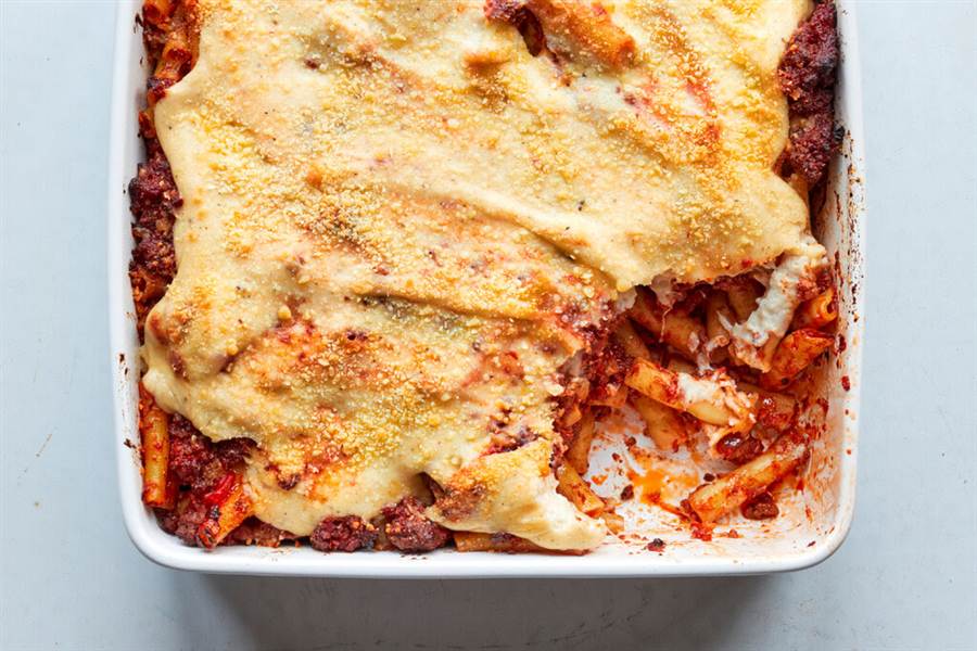 Pastitsio is a comforting Greek baked pasta similar to lasagna. It derives its name from “pasticcio” in Italian, which translates as “a mess,” indicating the forgiving, flexible nature of the dish.