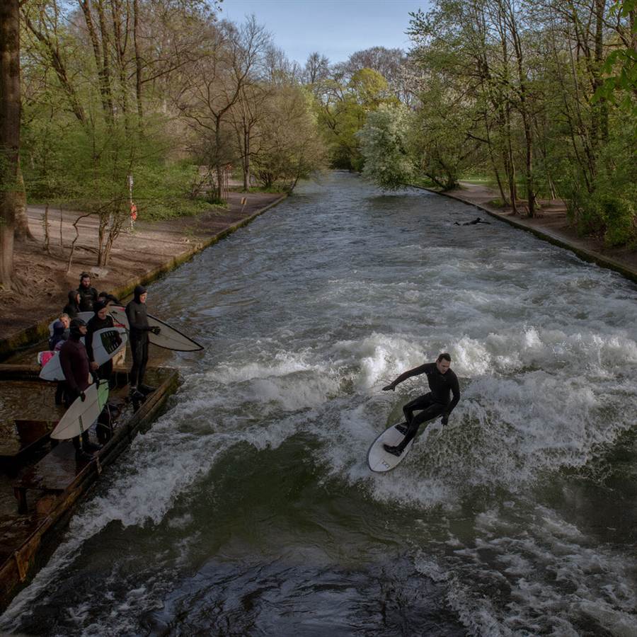 Munich is more than 300 kilometers from the sea, but until recently, it was a surf spot. Many people in the German city flocked to a creek called the Eisbach, where a man-made obstruction created a small but steady artificial wave in the freezing current. Surfers would wait in long lines to jump on their boards and see how long they could ride before being thrown off and swept downstream.
