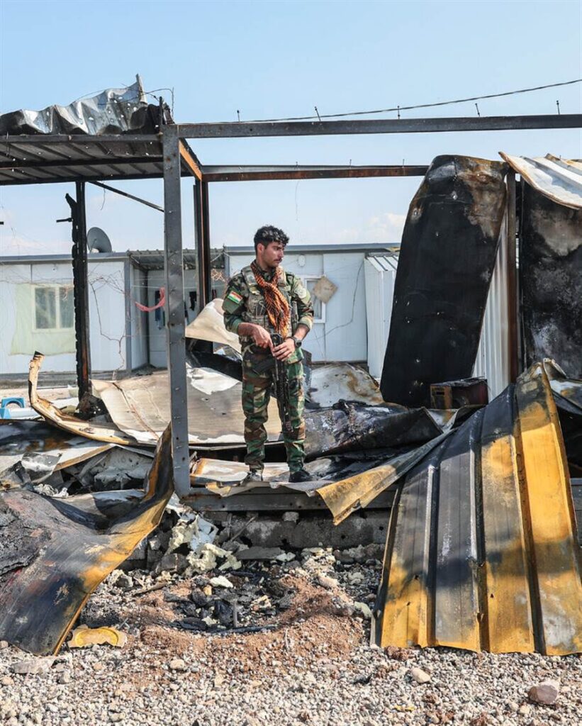 A Kurdish fighter in Erbil, Iraq, this month after an Iranian drone attack.  Sedat Suna/Getty Images