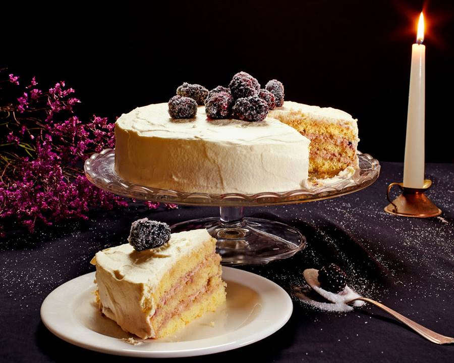 Blotkake is a layered spongecake covered with whipped cream and fruit, and Norwegians are passionate about it. The dessert is decorated with cloudberries, which are a protected crop in Norway and might be hard to find in some countries, but raspberries are a good substitute.
